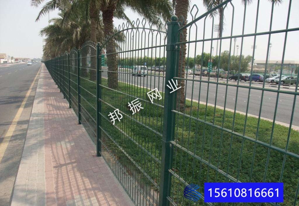 邊框護(hù)欄網(wǎng)作為一種組裝十分靈活的護(hù)欄產(chǎn)品,本產(chǎn)品既可以制作成永久性網(wǎng)墻使用,又可以作為臨時(shí)隔離網(wǎng)使用,只需采用不同的立柱固定方式便可實(shí)現(xiàn)。框架護(hù)欄網(wǎng)采用優(yōu)質(zhì)盤(pán)條作為原材料,經(jīng)由鍍鋅、涂前底漆和高附著力粉末噴涂三層保護(hù)的焊接式網(wǎng)片,具有日久抗腐蝕、抗紫外線的特性。在這種護(hù)欄網(wǎng)的表面處理為鍍鋅和噴涂,也可以任選一種,頂端蓋有塑料蓋或防雨帽。根據(jù)環(huán)境和安裝方式不同,可選用預(yù)埋50cm、加底座等方式。將框架護(hù)欄網(wǎng)的網(wǎng)片和立柱靠螺絲和各類(lèi)特殊的塑料或鐵的卡子連接。所有的螺絲均為自動(dòng)防盜的。所用配件也可以按照客戶的具體要求來(lái)設(shè)計(jì)。