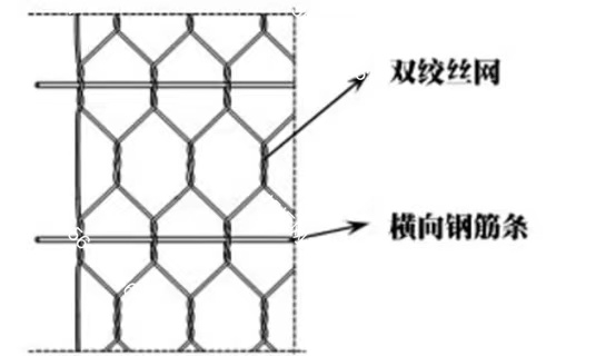 加筋石籠網(wǎng)箱是在網(wǎng)箱后連加筋重型六角網(wǎng),是在網(wǎng)箱后面連接網(wǎng)片,網(wǎng)片伸入土體中作為網(wǎng)箱的加筋網(wǎng),利用土體和網(wǎng)片的摩擦來增加巨大的抗滑力,具有良好的環(huán)境親和性。